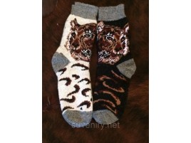 Теплые мужские носки из ангоровой шерсти с рисунком тигра