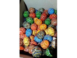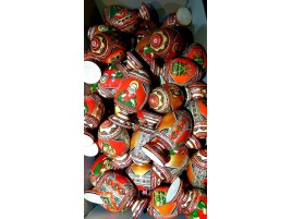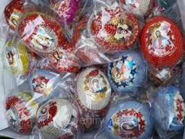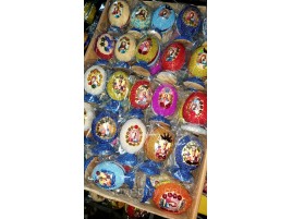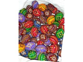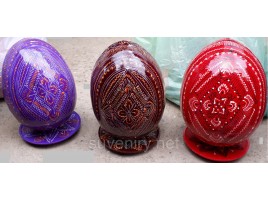 Изготовленные на Гуцульщине, эти декоративные яйца из дерева имеют красивый вид благодаря мастерству изготовителей. Народные умельцы вырезают из натуральной древесины изделия в виде яиц размером 4см и разукрашивают их тематическими узорами. В завершении каждая поделка покрывается лаком. В набор входит 3 писанки и тарелочка.